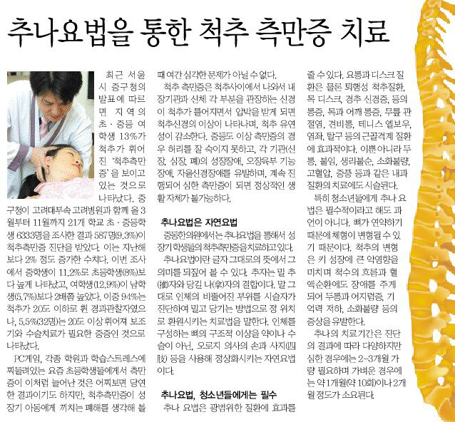 추나요법을 통한 척추측만증 치료 > 미디어&칼럼