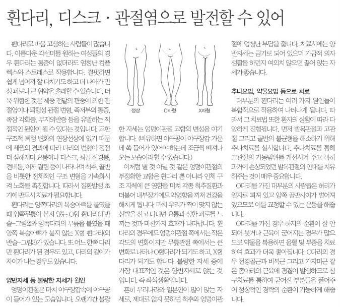 휜다리, 디스크 , 관절염으로 발전할수 있어 > 미디어&칼럼