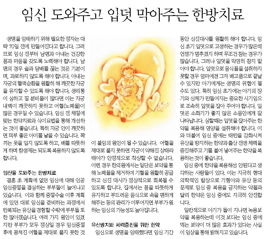 임신 도와주고 입덧 막아주는 한방치료 > 미디어&칼럼