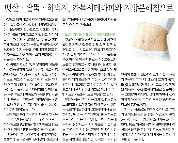 부분 비만, 카복시테라피와 지방분해 침으로 > 미디어&칼럼
