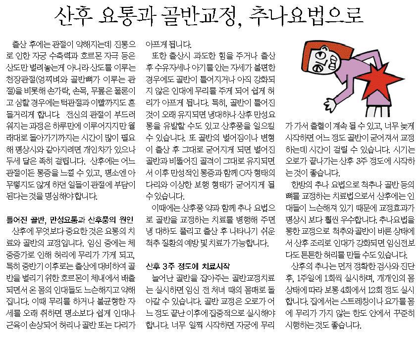 산후 요통과 골반교정, 추나요법으로 > 미디어&칼럼