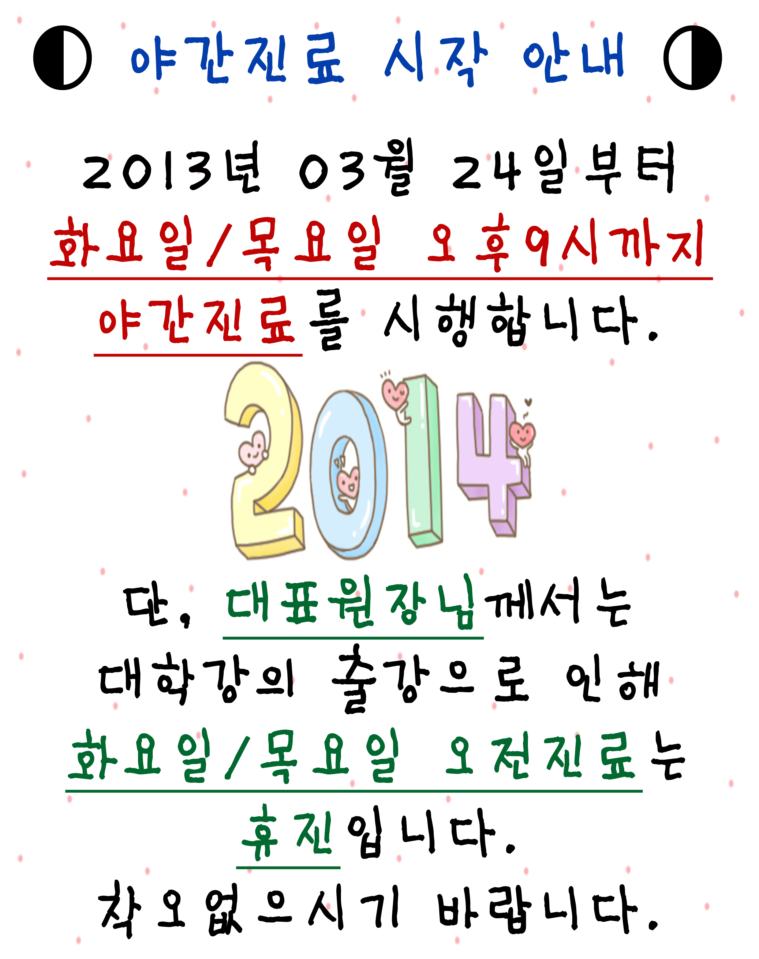 3/25 화요일부터 야간진료를 시작합니다. > 공지사항