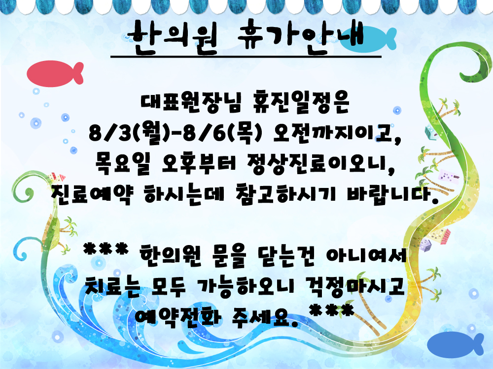 저희 중동한의원 대표원장님의 여름휴가 일정은~